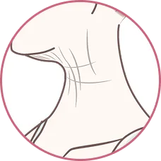 特徴二重あごや「首のたるみ」として目立ち、首全体が老け込んで見える要因になります。