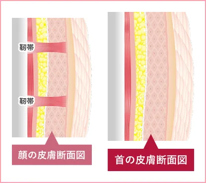一方、首にはこの「皮膚を支える靭帯」が存在しません。